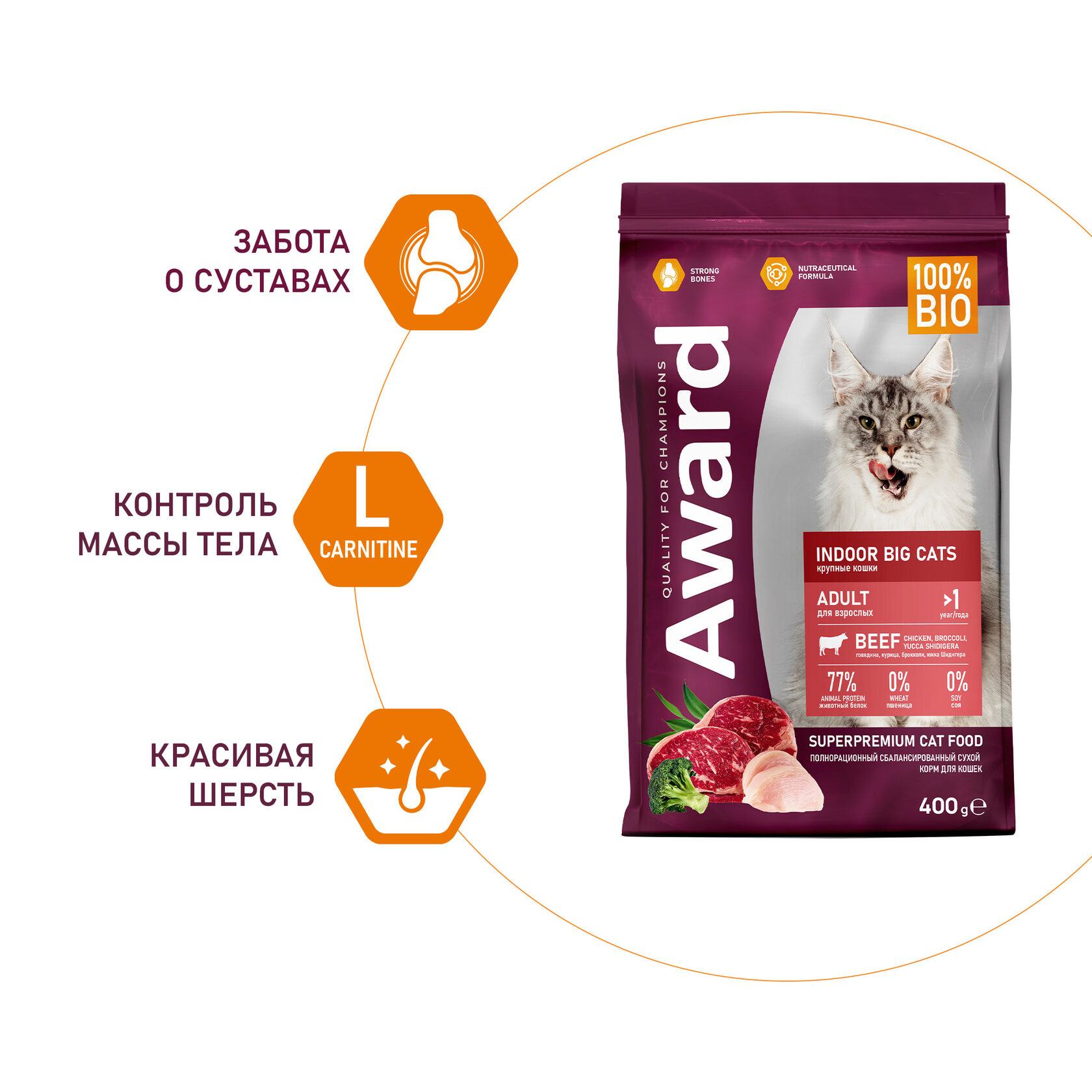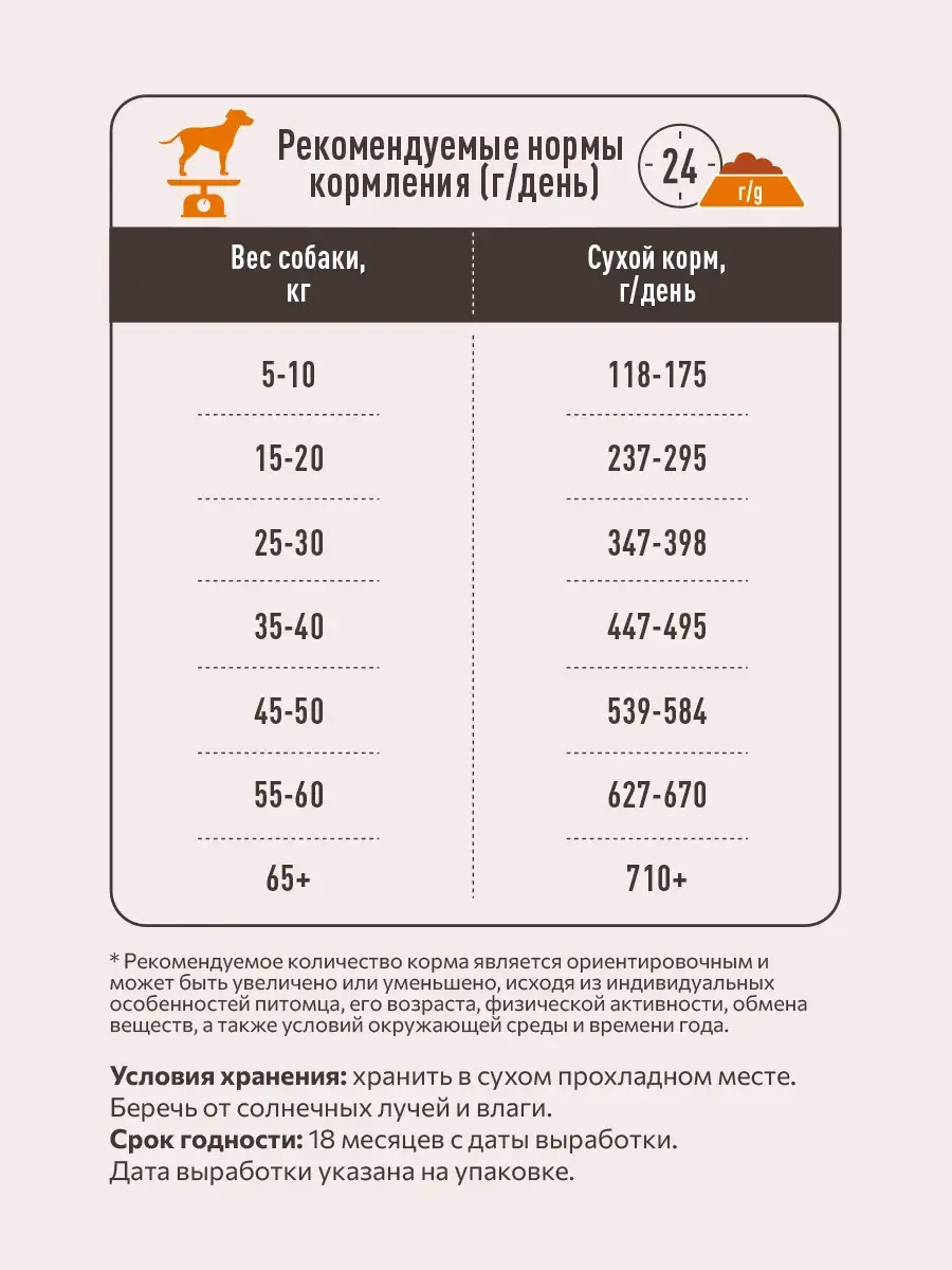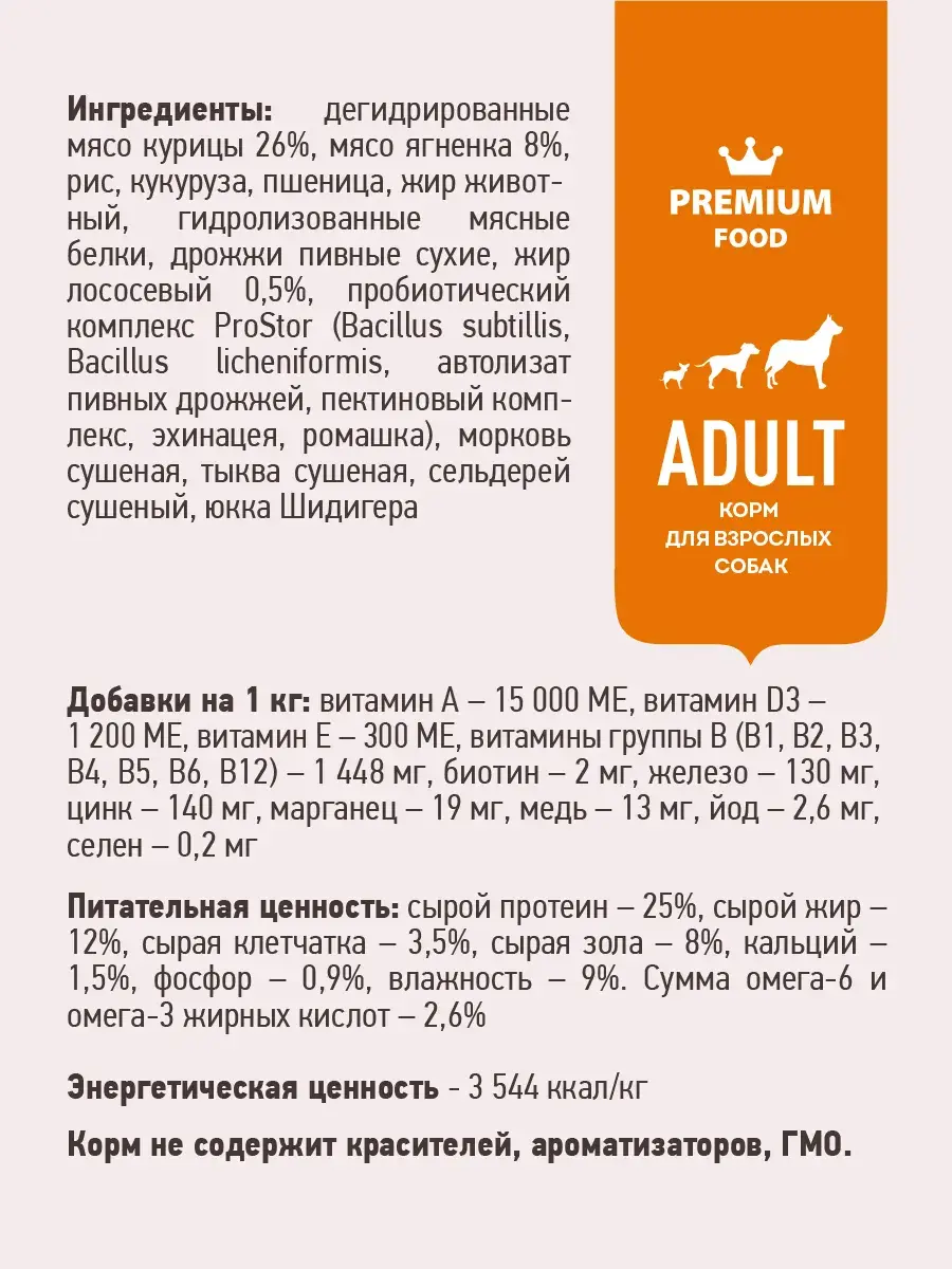 сырой белок 24%, сырой жир 14%, влага 9%, сырая зола 7%, сырая клетчатка 3%.