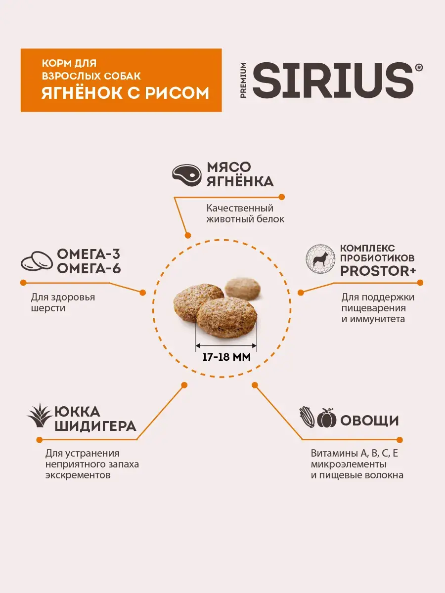 Рис, дегидрированная белая рыба 22%, овес, жир животный, ячмень, чечевица зеленая, гидролизованные мясные белки, рисовый белок, сушеная мякоть свеклы, витаминно-минеральный комплекс (A, D, E, C, B1, B2, B4, B6, B12, ниацин, пантотеновая кислота, биотин, фолиевая кислота), семена льна, рыбий жир (лососевый), брокколи, юкка Шидигера, сельдерей, розмарин, пробиотики (Bacillus subtilis, Bacillus licheniformis).