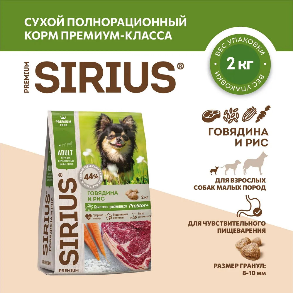 SIRIUS — полнорационный премиальный корм для взрослых собак мелких пород. Содержит высокий процент дегидрированного мяса птицы как основного источника качественного белка, необходимого для поддержания мышечной массы. Протеины легко усваиваются организмом собаки, обеспечивая энергию для активной жизни. Комплекс про- и пребиотиков 4-го поколения PROSTOR+, витамины и минералы поддерживают здоровье ЖКТ и укрепляют иммунную систему. Особый баланс жирных кислот (Омега-3 и Омега-6) улучшает состояние сердечно-сосудистой системы, кожных покровов и шерстяного покрова животного.